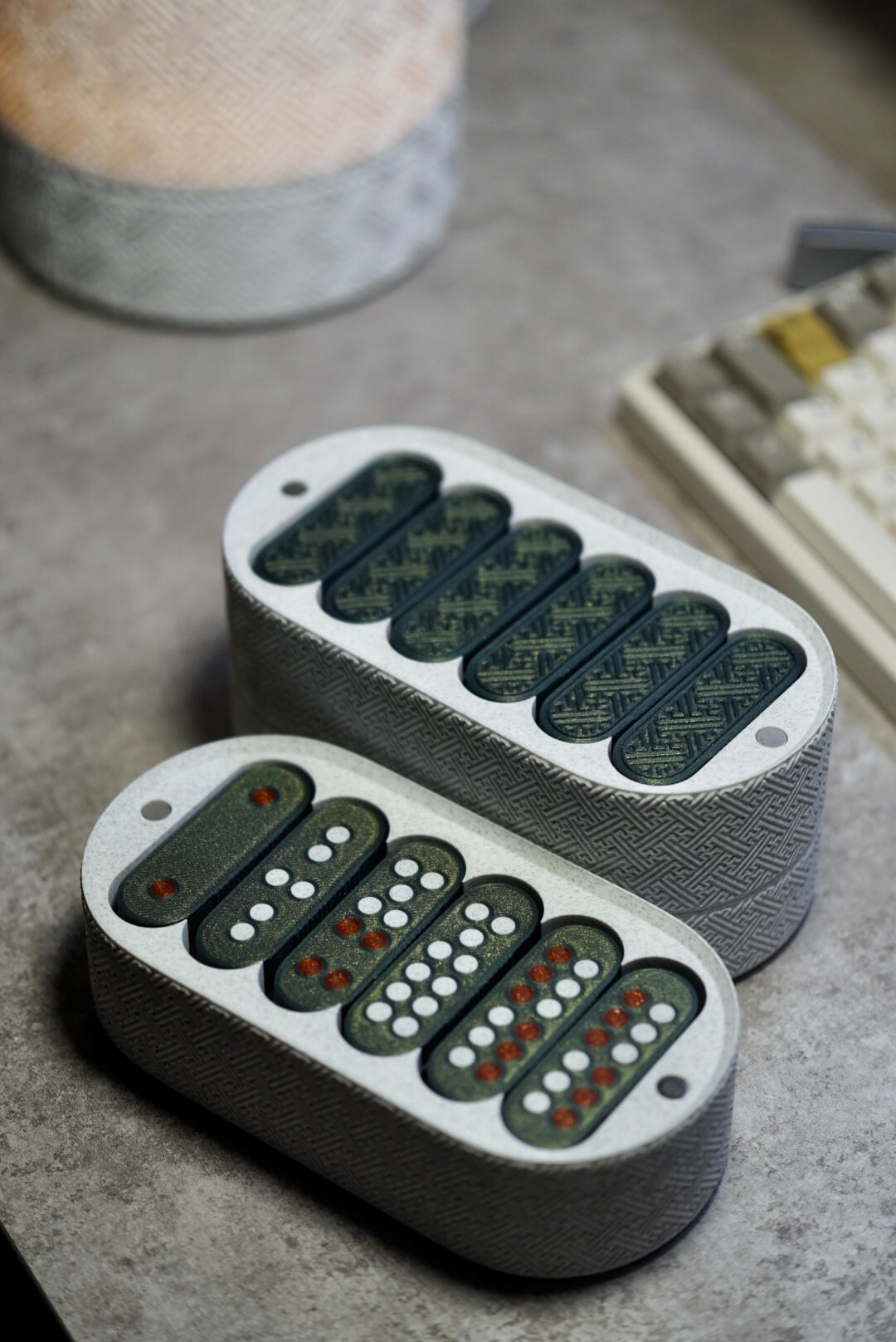 Даалуу, Шагай, Үзгийн Тавиурын Иж БүрдэлХалуун олноороо тойрон сууж, даалуу наадгайгаар наадан баясаж, нандин дурсамжийг хамтдаа бүтээх үнэт бэлгийг хайртай дотныхондоо зориулцгаая.Орчин үеийн ширээний зохион байгуулалт, уламжлалт тоглоомын мэдрэмжийг хослуулсан энэхүү иж бүрдэл нь таны ширээний эргэн тойронг өвөрмөц, сэтгэл татам болгохын хэрээр уламжлалт өв соёлоор баяжуулна. Гар аргаар 3D хэвлэсэн бөгөөд үзэгний тавиур, шагай, даалуу, хадгалах хайрцгуудыг багтаасан модулчлагдсан бүтэцтэй.